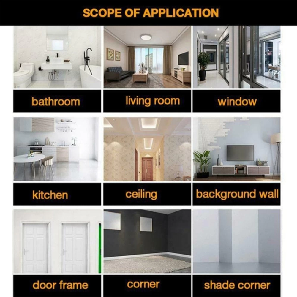(4) If the walls are clean, smooth, dry and free of dust, soap, grease, acceptable drywall, clean and smooth tiles, mold-proof edge tape can be installed on most well-structured substrates