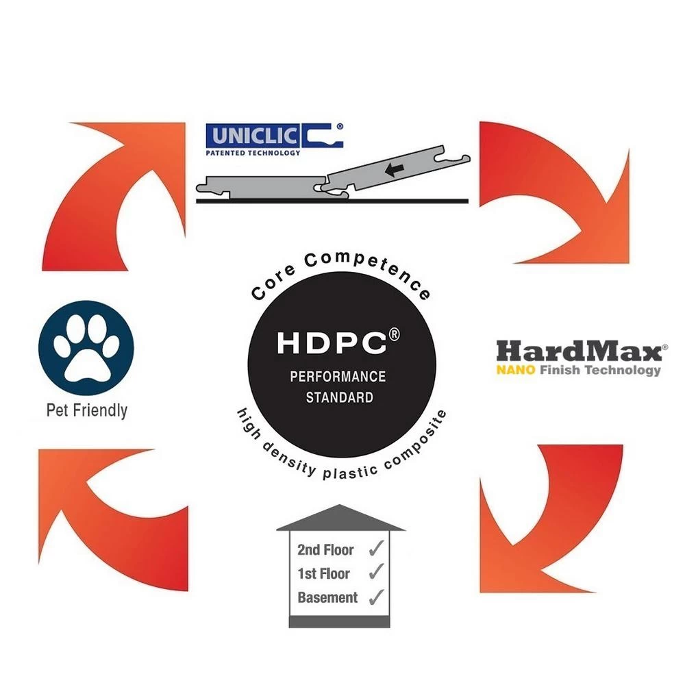 - Waterproof HDPC rigid core installs on any level of the home