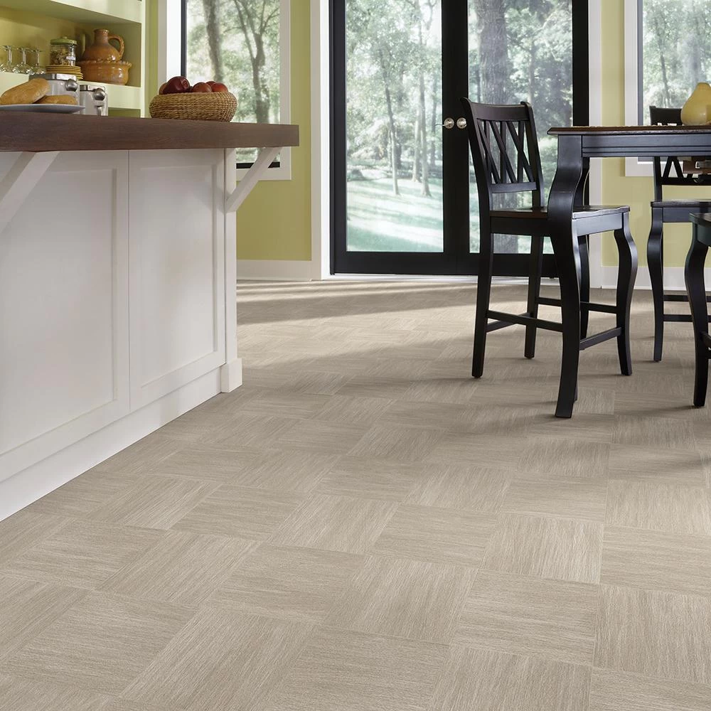 Woven Grey Tile sheet vinyl is part of the Paxton Collection by IVC. This abstract tile design showcases a sand grain texture and a blend of taupe and beige color tones. Backed by a 15-year residential warranty this beautifully crafted, waterproof product features easy installation, an easy-to-clean surface and exceptional comfort. The built-to-last design contains a urethane wear layer that provides the toughest protection against common household accidents, ensuring long-lasting appearance and functionality and common household accidents, ensuring long-lasting appearance and functionality.