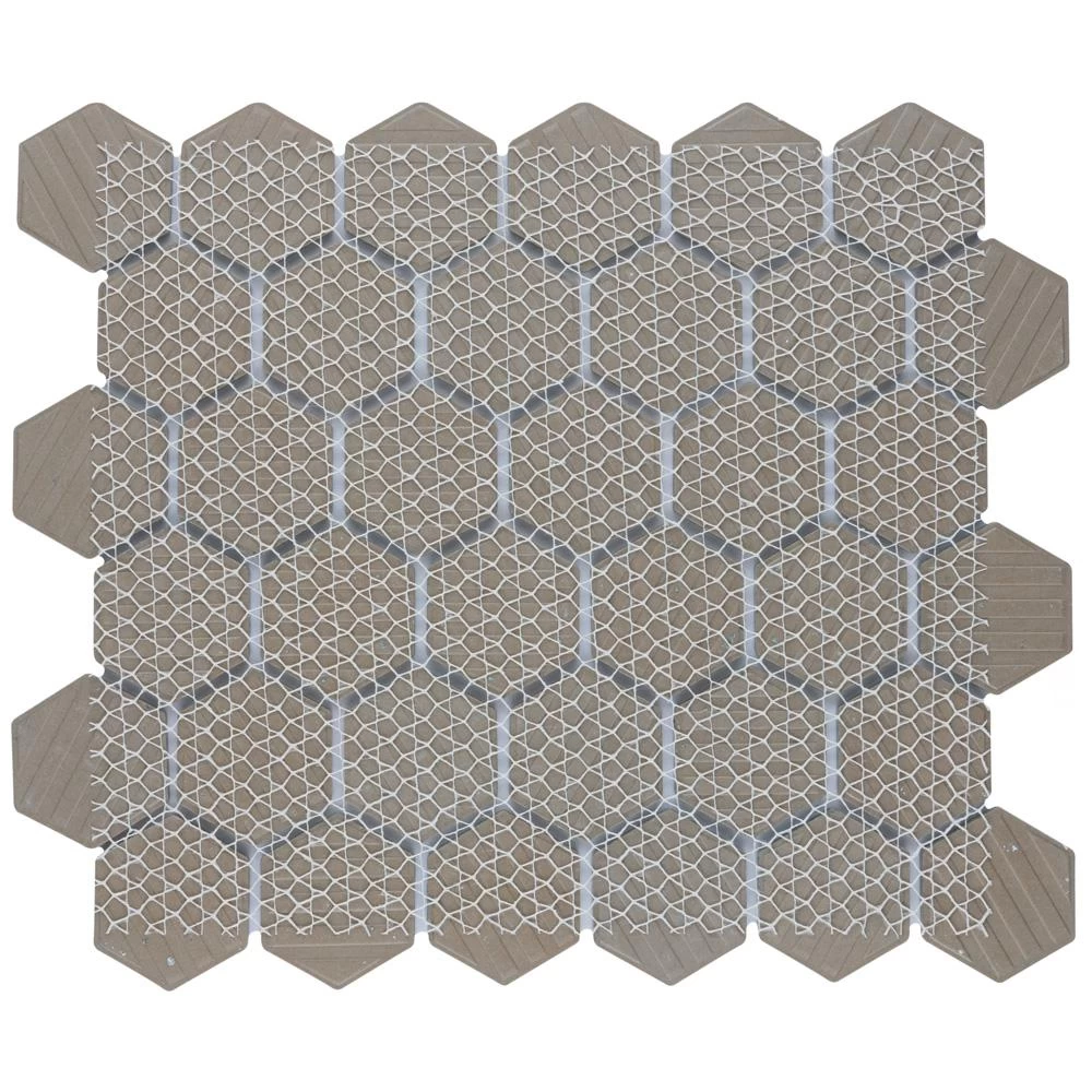 - 11.25 in. width x 12.50 in. length x 5mm thick mesh-mounted mosaic; 2.20 in. W x 2.20 in. L hexagon pieces