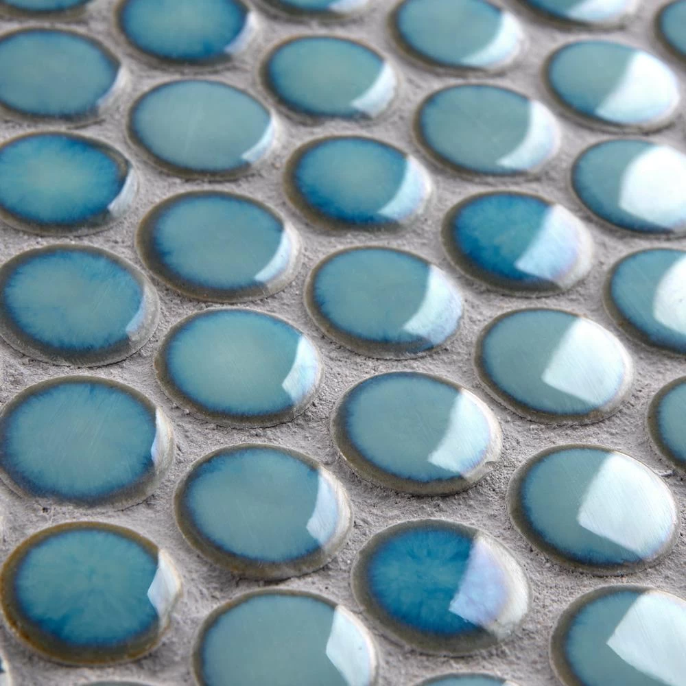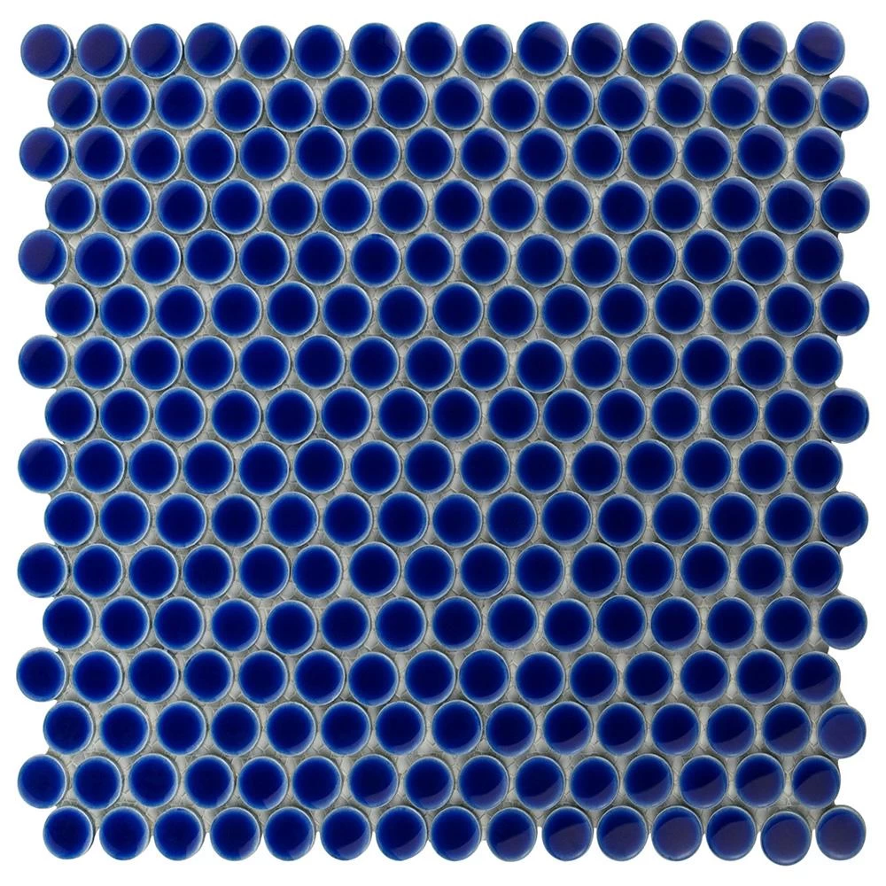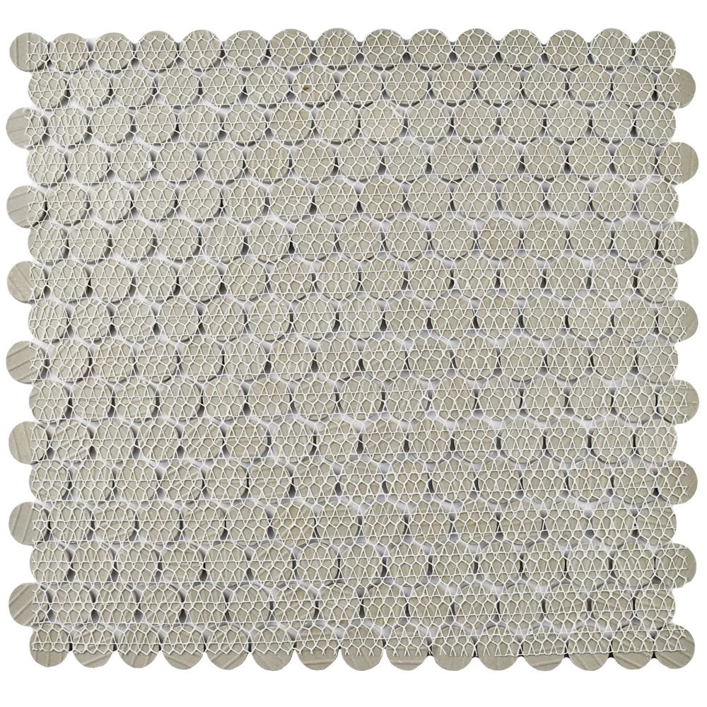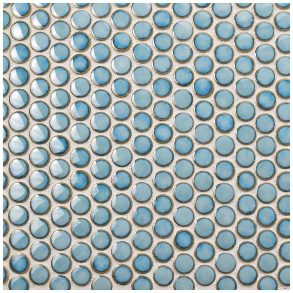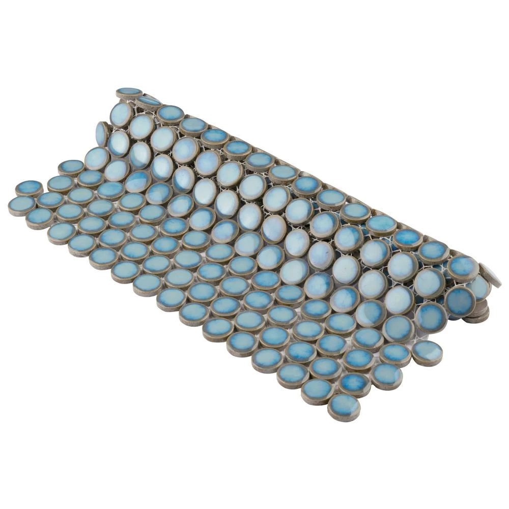 - 12 in. width x 12.63 in. length x 5 mm thick mesh-mounted mosaic. 0.8 in. W x 0.8 in. L penny round pieces