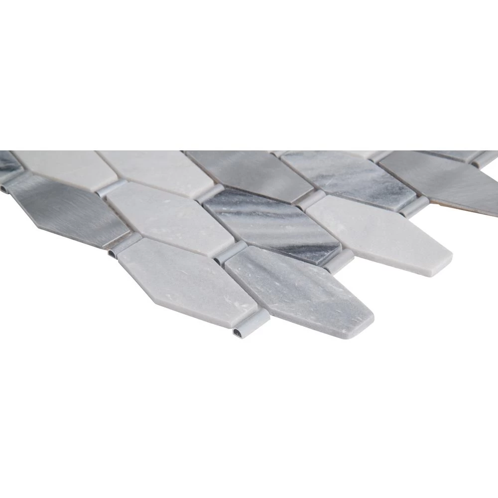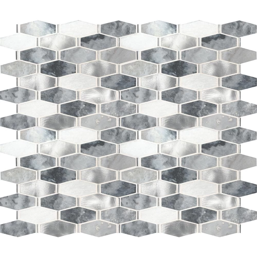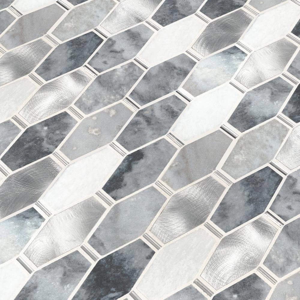 Easily install these MSI Ankara Metal/Stone Blend Mosaic Wall Tiles in your home to add an alluring style to your décor. They measure 13 in. x 11.61 in. and are mounted on a mesh sheet and are ready to match any design scheme. The gray natural-colored stone and metal create a distinct pattern that will stand out. It is recommended to blend tiles from different boxes as natural stone products can lack uniformity and are subject to variation in color, shade, finish, etc. Please inspect all tiles before installation; they may be characterized by dry seams and pits that are often filled. The filling can work its way out and it may be necessary to refill these voids as part of a normal maintenance procedure. All natural stone products should be sealed with a penetrating sealer.