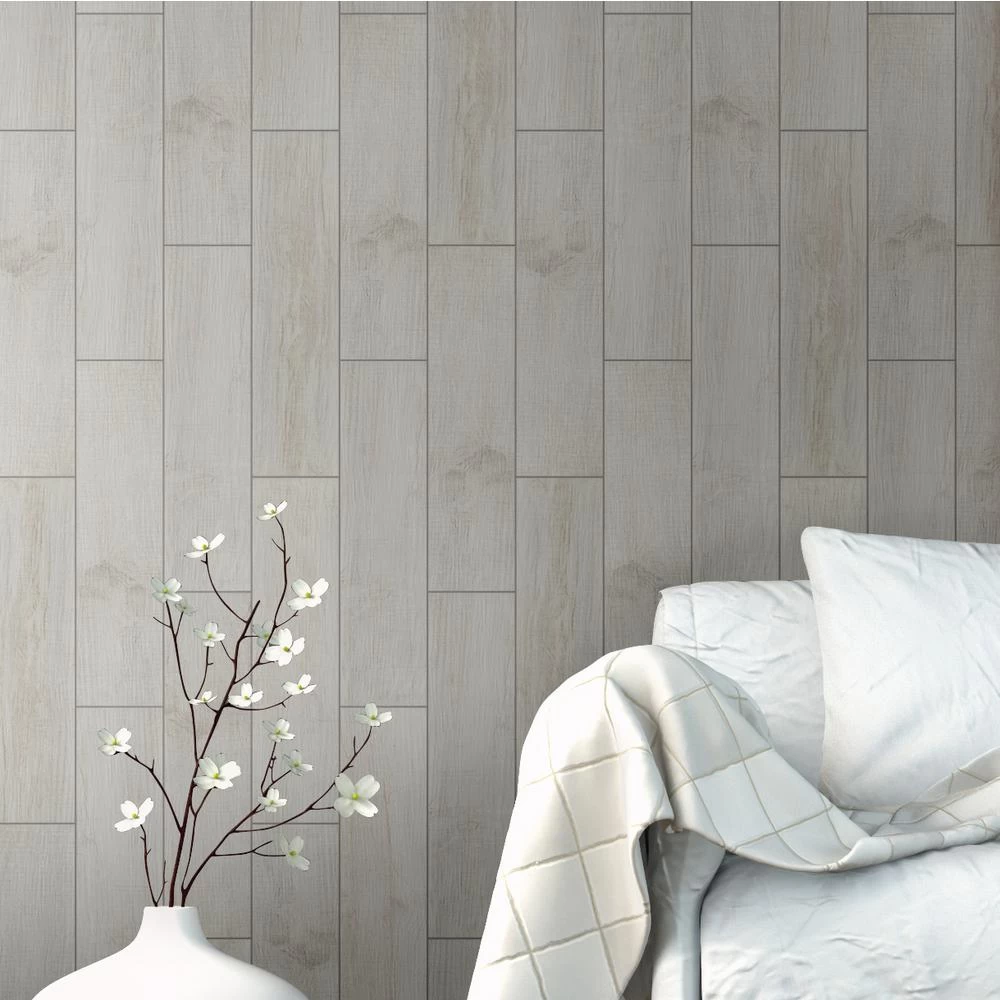 A style trifecta defines the MSI Madeira Bianco Glazed Ceramic Floor and Wall Tile. Combining a sleek, smooth finish with an elegant white tone, this tile provides the durability of ceramic with a classic wood grain look. A medium-sheen glaze and slight variation in tone allow the tile to elegantly blend with a wide range of decor styles. Ideal for indoor and some outdoor applications, this distinct pattern suits various installations in kitchens, bathrooms and other residential or commercial spaces.