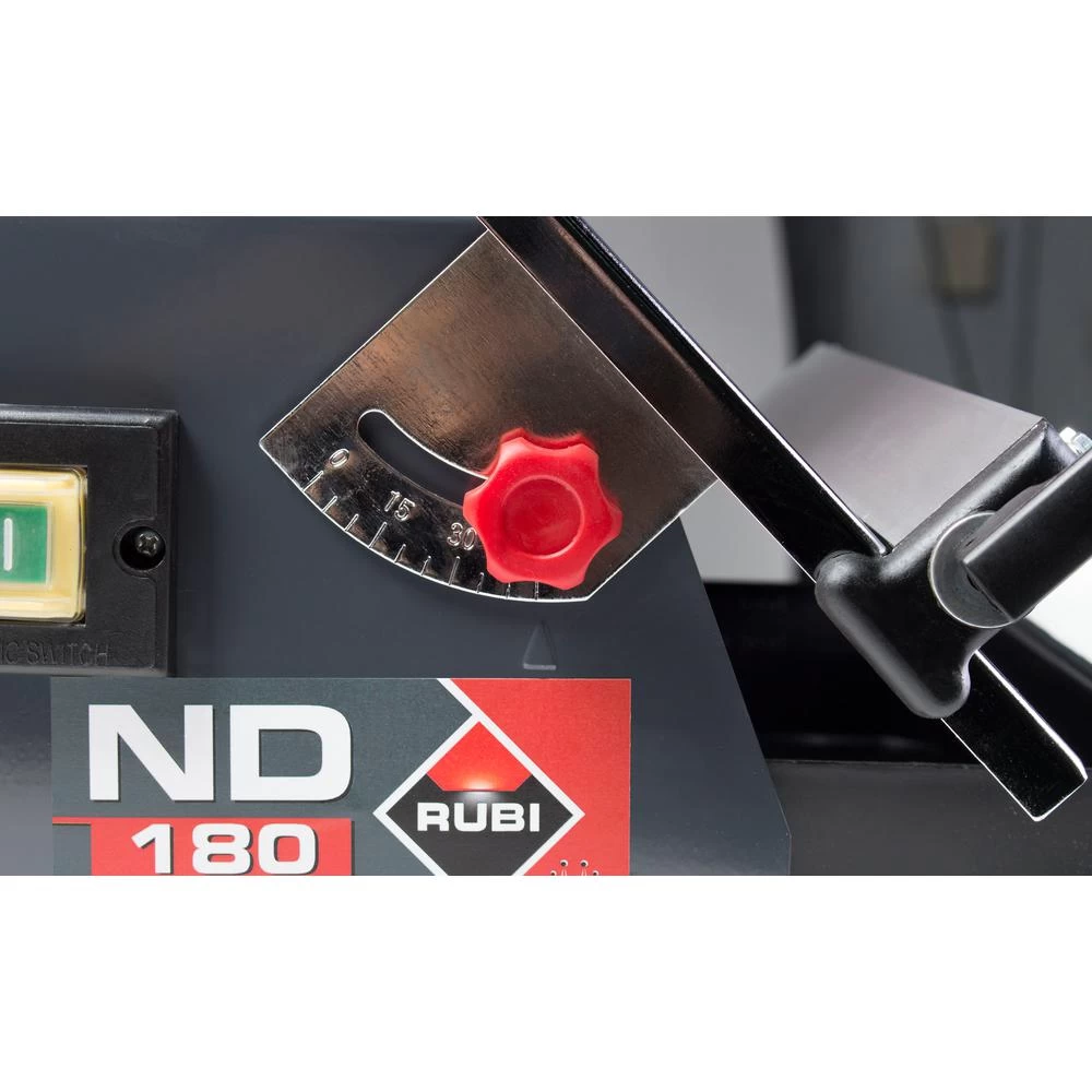 The ND-180 SMART is an electric wet tile cutter that is ideal for cutting all types of ceramic tiles and other materials. This portable tile cutter is great for carrying out finishes and renovations, allowing the professional tile installer to make the necessary cuts at all times, in the same workplace, reducing travel, corrections and downtime. Its low water consumption and the possibility of fitting a work tray make it one of the cleanest miter saws on the market. The metal table is adjustable, and can be set to up to 45° to make miter cuts.