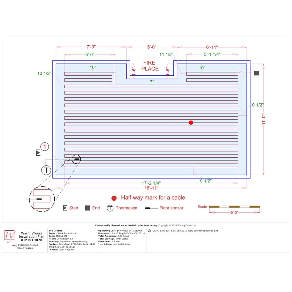 The WarmlyYours floor heating kit with cable is designed for applications under tile, stone and nailed hardwood floors. WarmlyYours TempZone Floor Heating Cable brings radiant warmth and comfort to any room. This free-form cable provides ultimate flexibility to install in rooms of any size and shape. TempZone Floor Heating Cable is ultra-low EMF by design. It features a twin conductor with a 15 ft. cold lead and it can be installed at 3 in. to 4 in. intervals to meet the needs of any installation. Along with comes the programmable nSpire touchscreen thermostat. The nSpire Touch allows you maximum control over the floor temperature with 4 programmable events for each day of the week, which is great for Goldilocks households where there will be frequent adjustments to the temperature or thermostat’s schedule until it’s just right. This dual voltage (120-Volt/240-Volt) thermostat puts the control where it belongs, at your fingertips. Includes floor sensor. The energy-efficient, Prodeso Cable Installation Membrane minimizes efforts while fitting a heating cable for electric floor heating. This cost- and time-effective heat membrane allows quick installation of tile and floor heating over a variety of different substrates, such as plywood, concrete slabs or wherever heat is desired. There is no waiting required after installation so you can begin laying the flooring immediately. It’s that quick.
